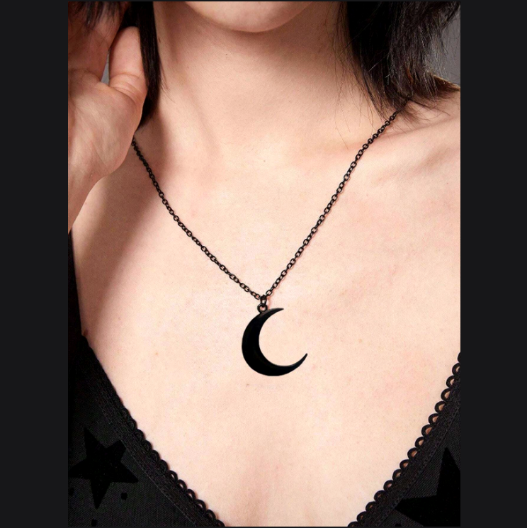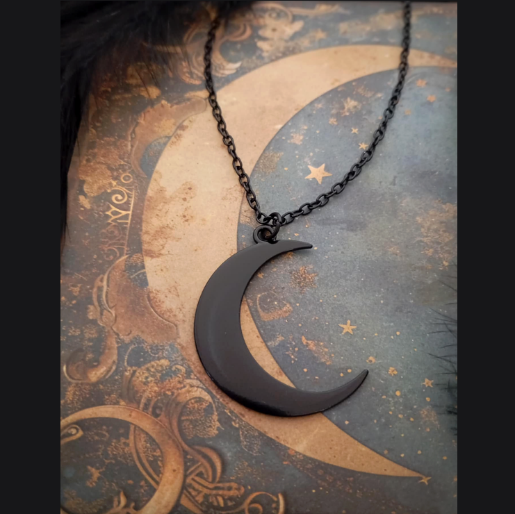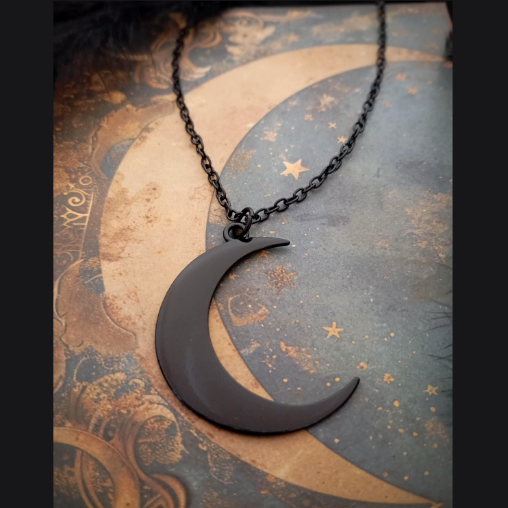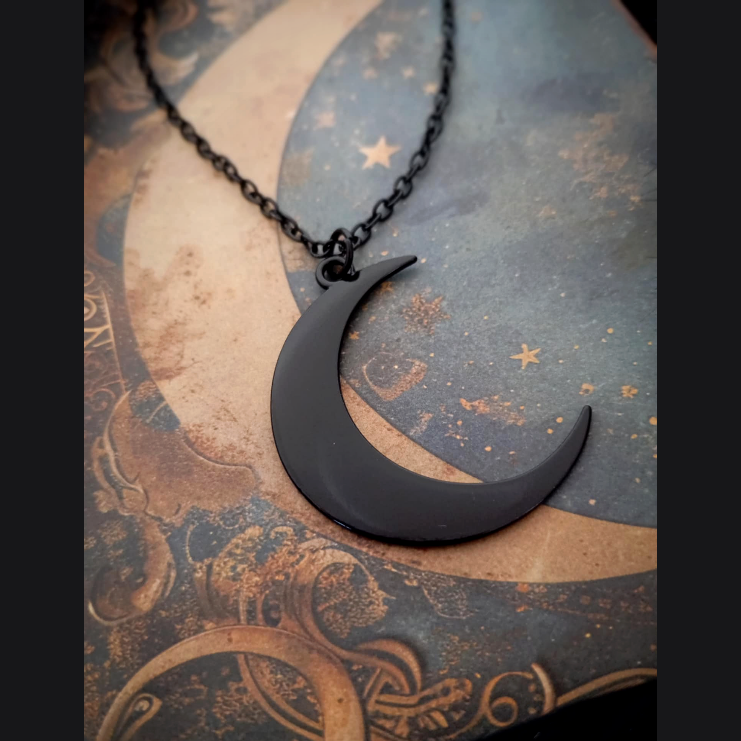 Μαύρο gothic μεταλλικό μενταγιόν με ημισέληνο και αλυσίδα.