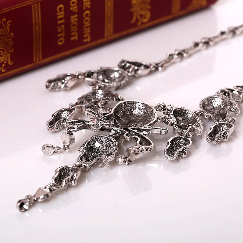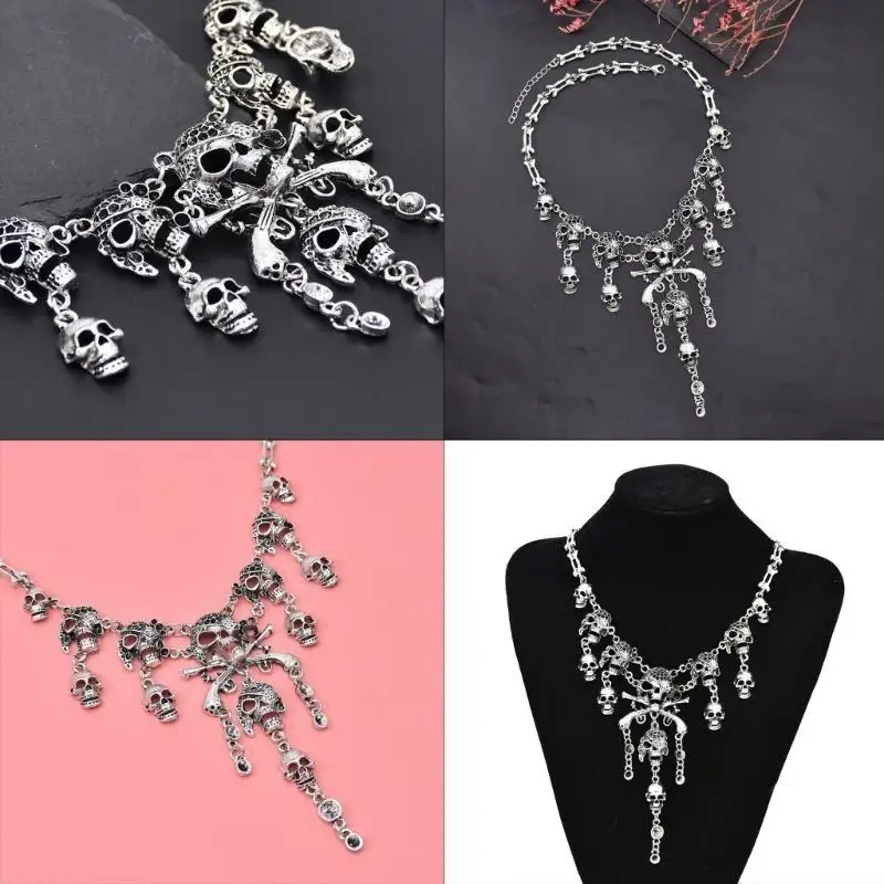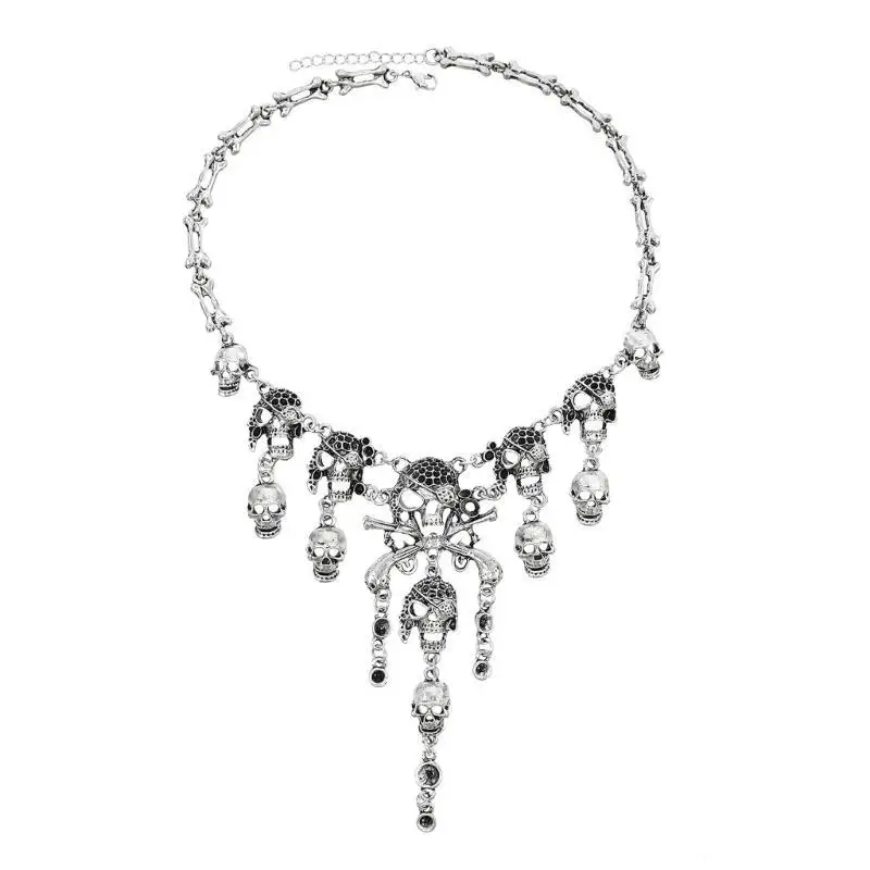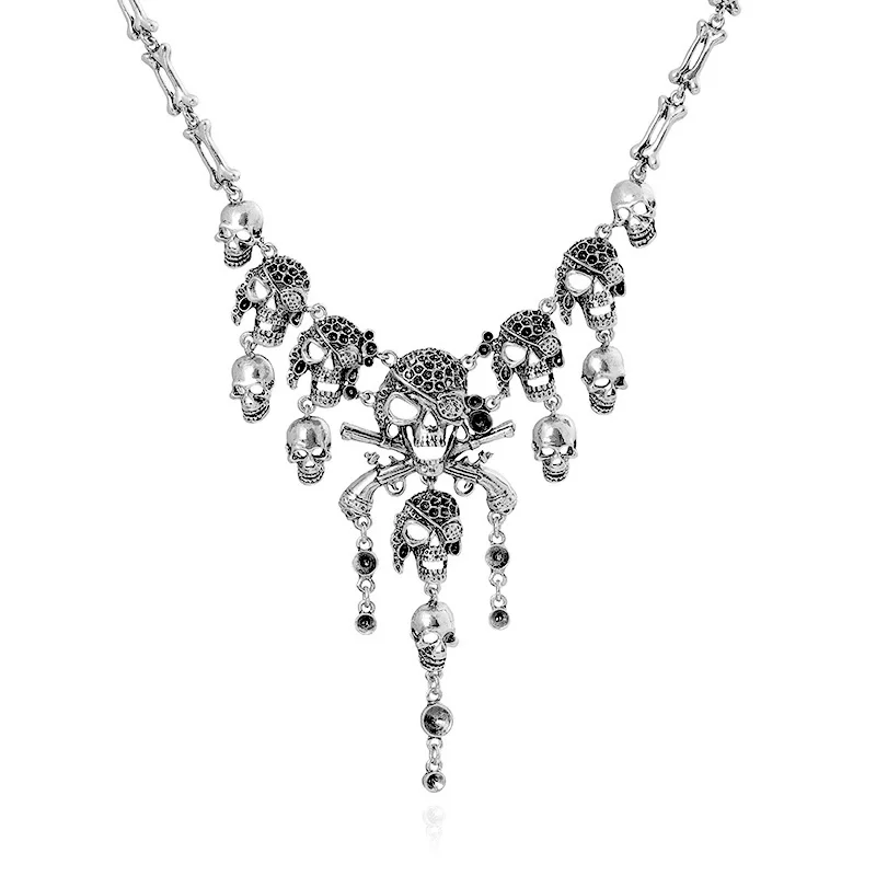 Ασημί Gothic Περιδέραιο Crystal Pirate Skulls