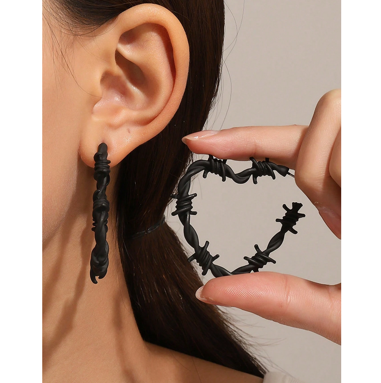 Μαύρα Gothic Σκουλαρίκια Barbed Wire Hearts