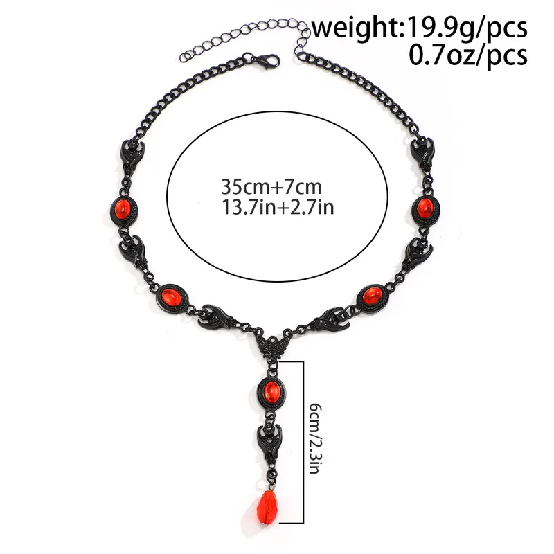 Μαύρο Gothic Κολιέ Red Stone Bats