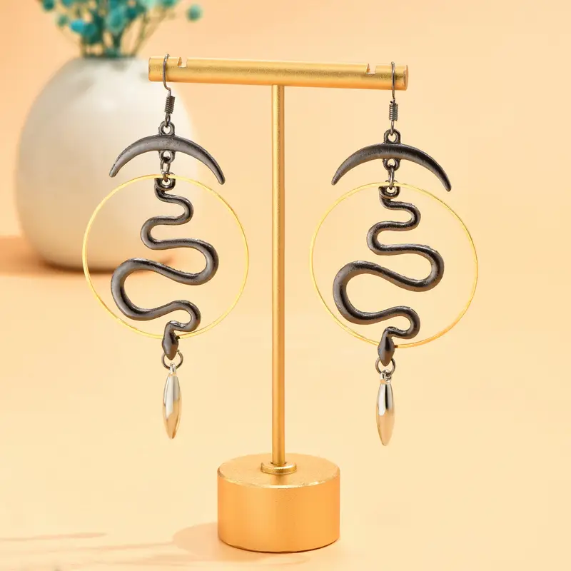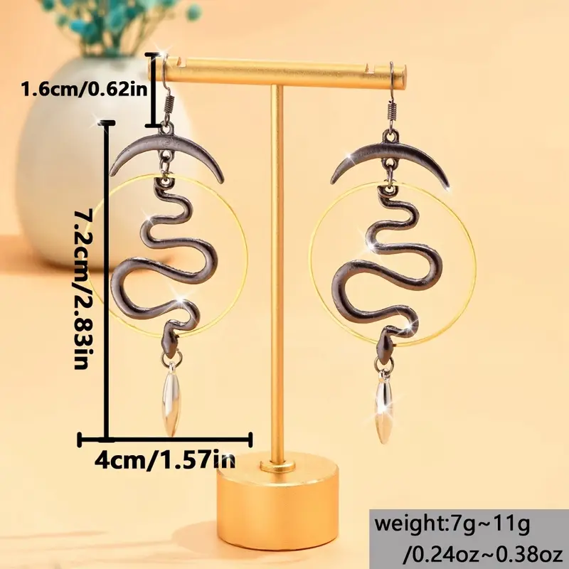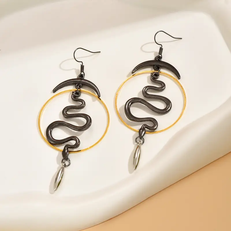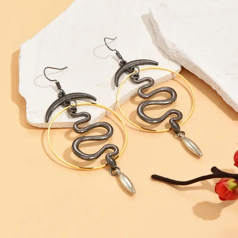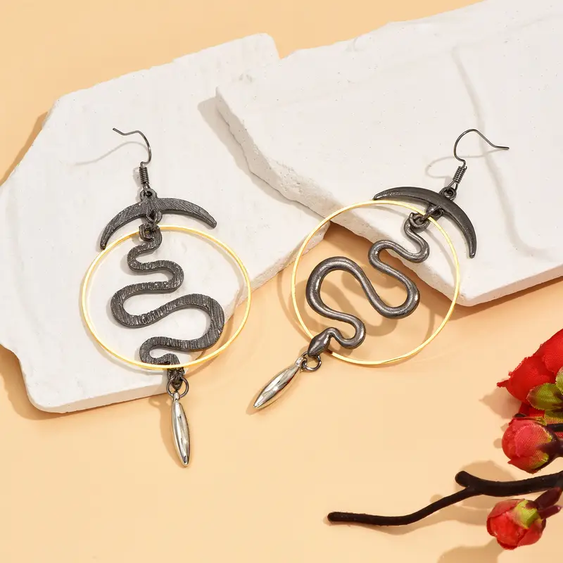 Mystic goth σκουλαρίκια τριών αποχρώσεων με κρίκο, φίδι και ημισέληνο.