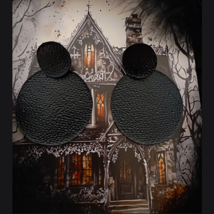 Μαύρα Minimal Σκουλαρίκια Ανάγλυφοι Δίσκοι