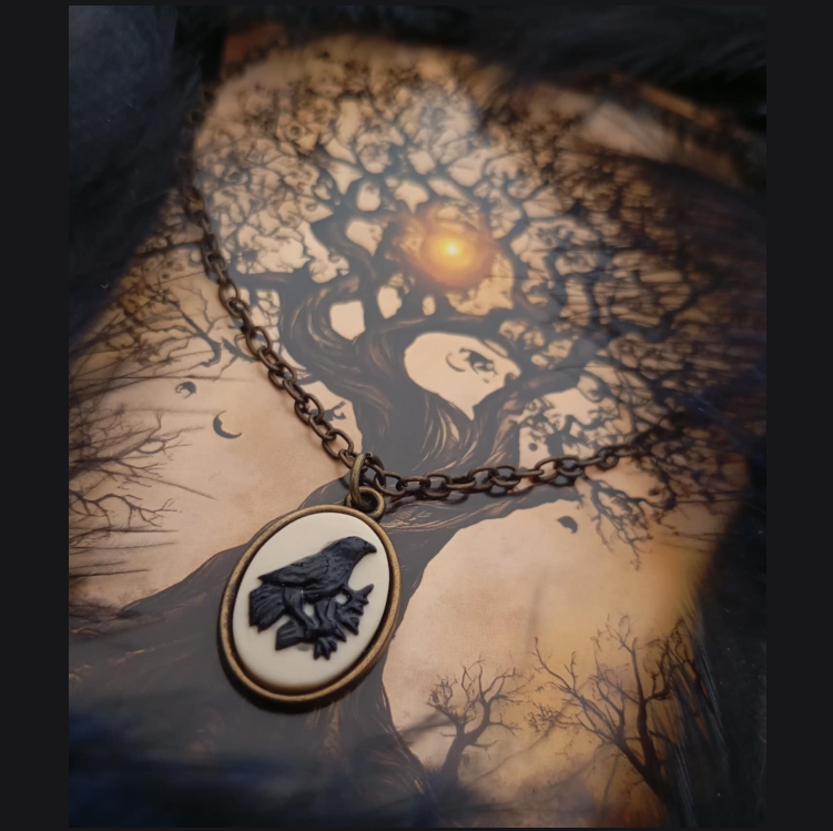 Gothic Vintage Μπρούντζινο Μενταγιόν Black Raven